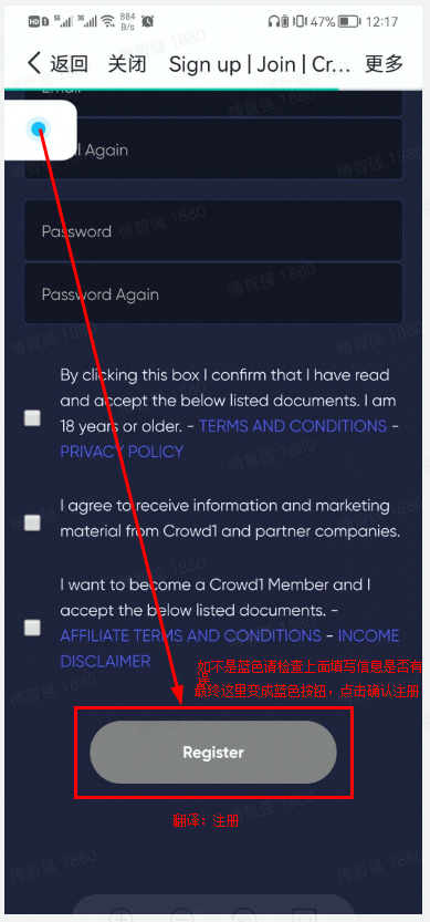 信息填写完成后Register按钮变成蓝色,点击完成注册!