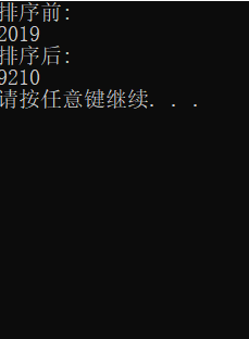 // 调用排序函数对字符数组中的字符由大到小排序