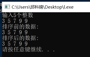 // 示例: 使用选择法排序对一组整数由小到大排序