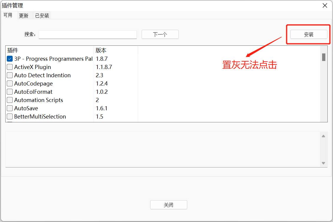 1、在插件管理中,选择了插件后,下载按钮置灰的,没法点击,RT