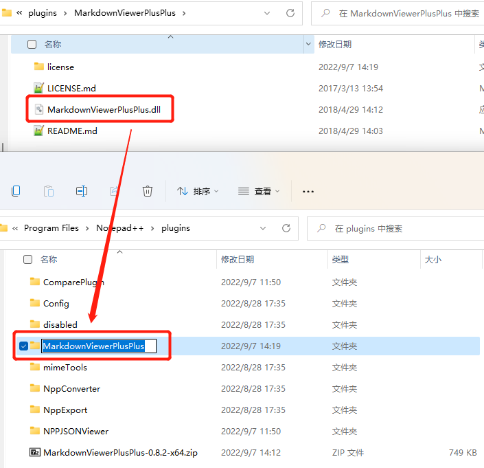 1、去回收站中找到下载的插件的zip包,然后打开notepad++的安装目录下的plugins文件夹,将zip包解压到这个路径下