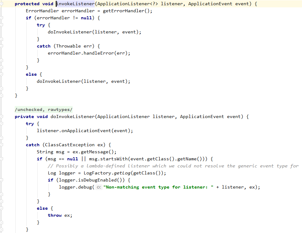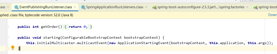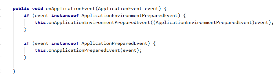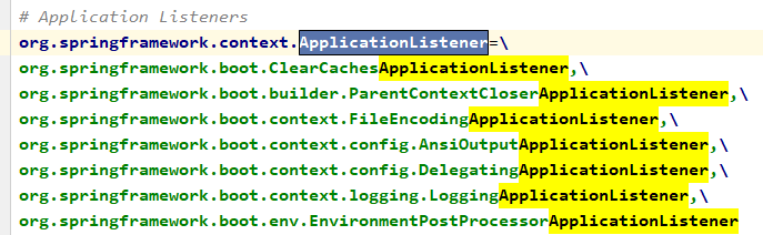 // 这里取的就是 上面spring.factories中加载出来的ApplicationListener 监听器 Iterator var3 = application.getListeners().iterator(); while(var3.hasNext()) { ApplicationListener<?> listener = (ApplicationListener)var3.next();