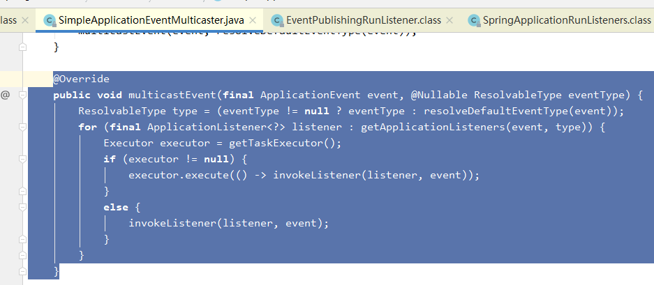 // 直接new了一个事件发布器 this.initialMulticaster = new SimpleApplicationEventMulticaster();