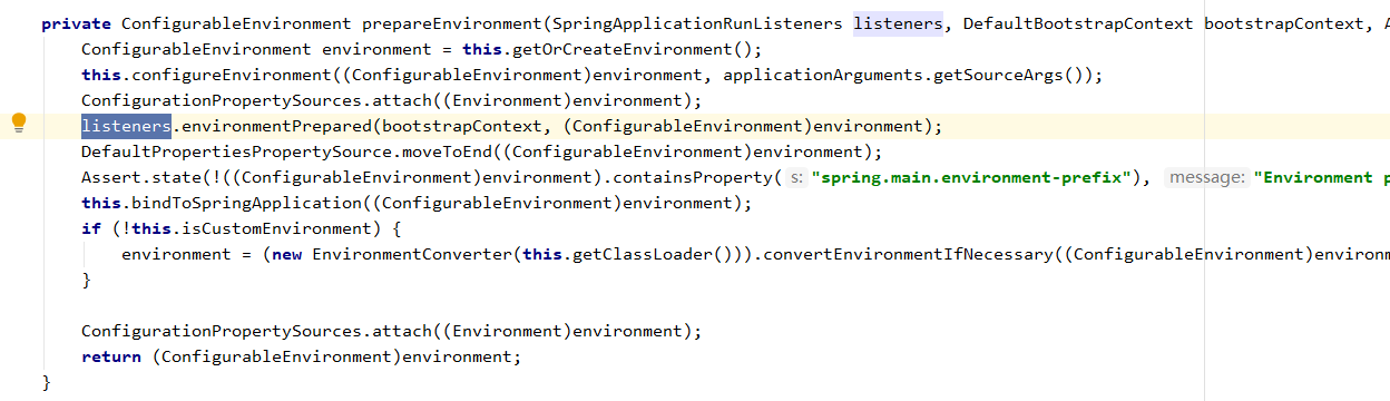 ConfigurableEnvironment environment = this.prepareEnvironment(listeners, bootstrapContext, applicationArguments);