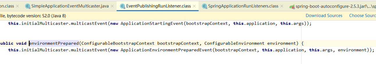 this.getSpringFactoriesInstances(SpringApplicationRunListener.class, types, this, args) 这个方法不仅会加载spring.factories中的类,还会进行实例化。而EventPublishingRunListener 只有一个构造器。