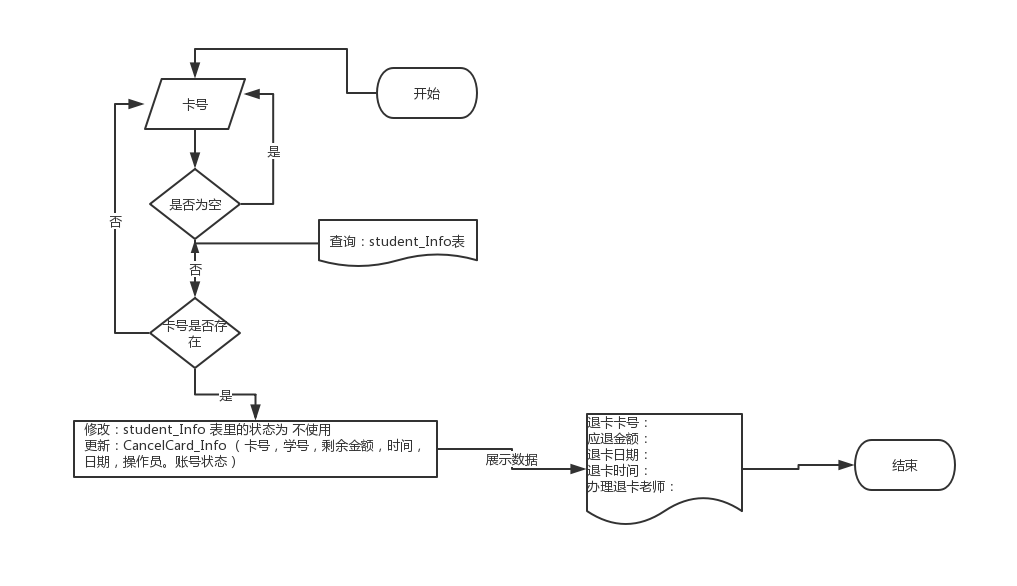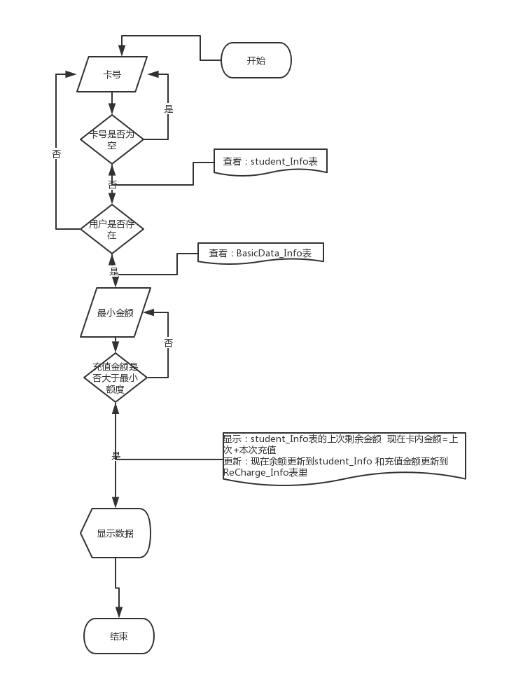 前言:在完成学生信息管理的时候没有化流程图因为,学生有源码。但是机房收费系统几乎没有源码。有都是零零散散的,不是一个人写的所以不连贯。思路已不是很一致,功能一样但是人的思想是不一样的。所以实现方式上是有些差距的,流程图大致上都是一样的。因为要实现的功能都一样,下面我就分享一波我在做机房收费系统的时候化的一些流程图。