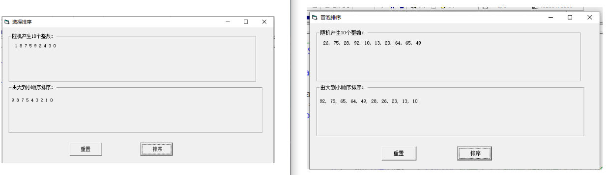 Label2.Caption = Join(a) '输出排序结果 join函数是把数组,以字符串输出。