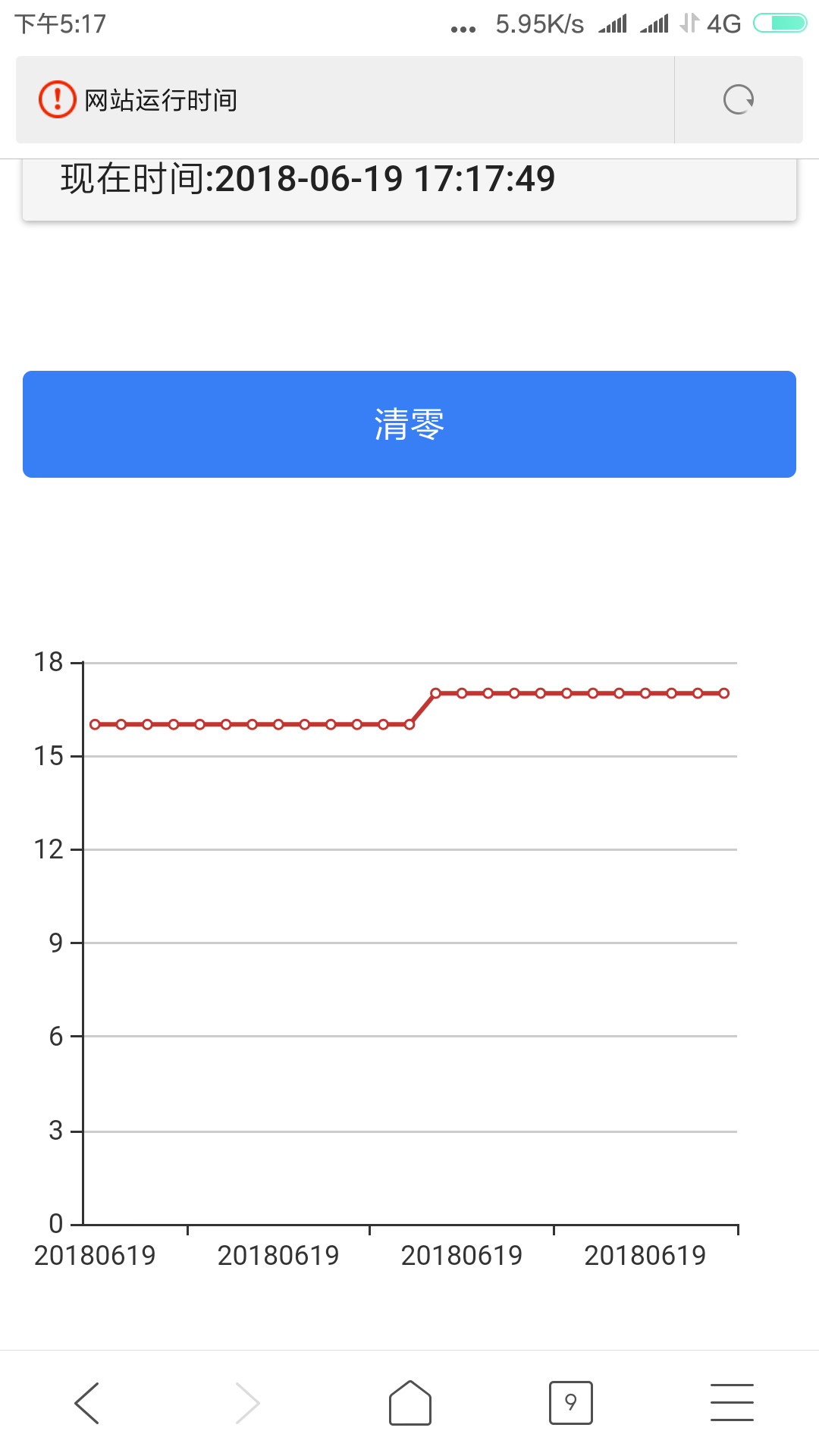 1 <html> 2 <head> 3 <meta charset="utf-8"> 4 <meta name="viewport" content="initial-scale=1, maximum-scale=1, user-scalable=no, width=device-width"> 5 <title>网站运行时间</title> 6 <link href="https://cdn.bootcss.com/ionic/1.3.2/css/ionic.css" rel="stylesheet"> 7 <script src="https://cdn.bootcss.com/ionic/1.3.2/js/ionic.bundle.min.js"></script> 8 <script type="text/javascript"> 9 angular.module('starter', ['ionic']) 10 11 .run(function($ionicPlatform) { 12 $ionicPlatform.ready(function() { 13 // Hide the accessory bar by default (remove this to show the accessory bar above the keyboard 14 // for form inputs) 15 if(window.cordova && window.cordova.plugins.Keyboard) { 16 cordova.plugins.Keyboard.hideKeyboardAccessoryBar(true); 17 } 18 if(window.StatusBar) { 19 StatusBar.styleDefault(); 20 } 21 }); 22 }) 23 24 .controller( 'actionsheetCtl',['$scope',function($scope){ 25 26 $scope.devList = [ 27 { text: "HTML5", checked: true }, 28 { text: "CSS3", checked: false }, 29 { text: "JavaScript", checked: false } 30 ]; 31 32 $scope.pushNotificationChange = function() { 33 console.log('Push Notification Change', $scope.pushNotification.checked); 34 }; 35 36 $scope.pushNotification = { checked: true }; 37 $scope.emailNotification = 'Subscribed'; 38 39 }]) 40 </script> 41 <style type="text/css"> 42 body { 43 cursor: url('https://www.runoob.com/try/demo_source/finger.png'), auto; 44 } 45 </style> 46 </head> 47 <body ng-app="starter" ng-controller="actionsheetCtl" > 48 49 50 51 <ion-content> 52 53 <div class="content has-header"> 54 55 <div class="card"> 56 <div class="item item-divider"> 57 开始时间:{{a}} 58 </div> 59 <div class="item item-text-wrap"> 60 <center><h1>{{b}}天</h1></center> 61 </div> 62 <div class="item item-divider"> 63 现在时间:{{c}} 64 </div> 65 </div> 66 </div> 67 </br> 68 </br> 69 </br> 70 <form method="post" action="/time"> 71 <div class="padding"> 72 <button name='time' value='qk' class="button button-block button-positive">清零</button> 73 </div> 74 </form> 75 76 <body style="height: 70%; margin: 0"> 77 <div id="container" style="height: 100%"></div> 78 <script type="text/javascript" src="http://echarts.baidu.com/gallery/vendors/echarts/echarts.min.js"></script> 79 <script type="text/javascript" src="http://echarts.baidu.com/gallery/vendors/echarts-gl/echarts-gl.min.js"></script> 80 <script type="text/javascript" src="http://echarts.baidu.com/gallery/vendors/echarts-stat/ecStat.min.js"></script> 81 <script type="text/javascript" src="http://echarts.baidu.com/gallery/vendors/echarts/extension/dataTool.min.js"></script> 82 <script type="text/javascript" src="http://echarts.baidu.com/gallery/vendors/echarts/map/js/china.js"></script> 83 <script type="text/javascript" src="http://echarts.baidu.com/gallery/vendors/echarts/map/js/world.js"></script> 84 <script type="text/javascript" src="http://api.map.baidu.com/api?v=2.0&ak=ZUONbpqGBsYGXNIYHicvbAbM"></script> 85 <script type="text/javascript" src="http://echarts.baidu.com/gallery/vendors/echarts/extension/bmap.min.js"></script> 86 <script type="text/javascript" src="http://echarts.baidu.com/gallery/vendors/simplex.js"></script> 87 <script type="text/javascript"> 88 var dom = document.getElementById("container"); 89 var myChart = echarts.init(dom); 90 var app = {}; 91 option = null; 92 option = { 93 xAxis: { 94 type: 'category', 95 data: {{l0}} 96 }, 97 yAxis: { 98 type: 'value' 99 }, 100 series: [{ 101 data: {{l1}}, 102 type: 'line' 103 }] 104 }; 105 ; 106 if (option && typeof option === "object") { 107 myChart.setOption(option, true); 108 } 109 </script> 110 </body> 111 112 113 114 </ion-content> 115 116 </body> 117 </html>