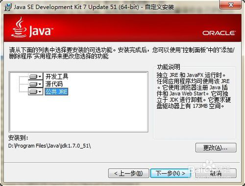 D:\ProgramFiles\Java\jdk1.7.0_51,所以填D:\Program