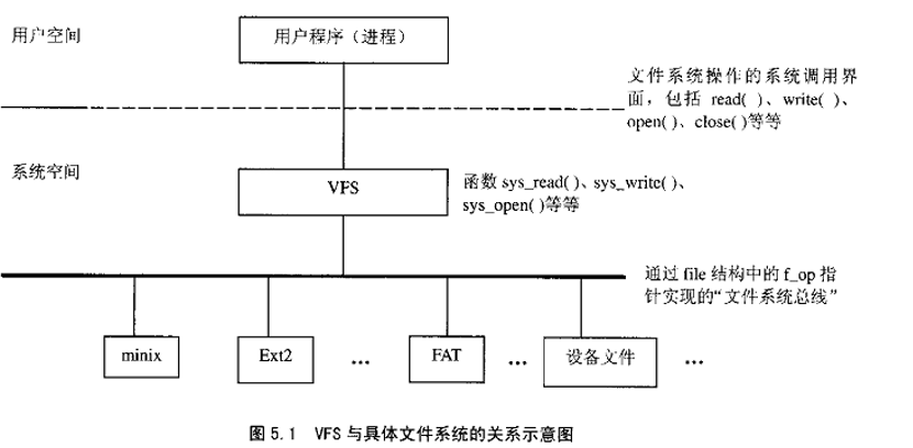 - 第二层为VFS (Virtual File System)接口层。该层有两个接口:一个是与用户的接口;一个是与特定文件系统的接口。VFS与用户的接口将所有对文件的操作定向到相应的特定文件系统函数上。VFS与特定文件系统的接口主要是通过vfs-operations来实现的。