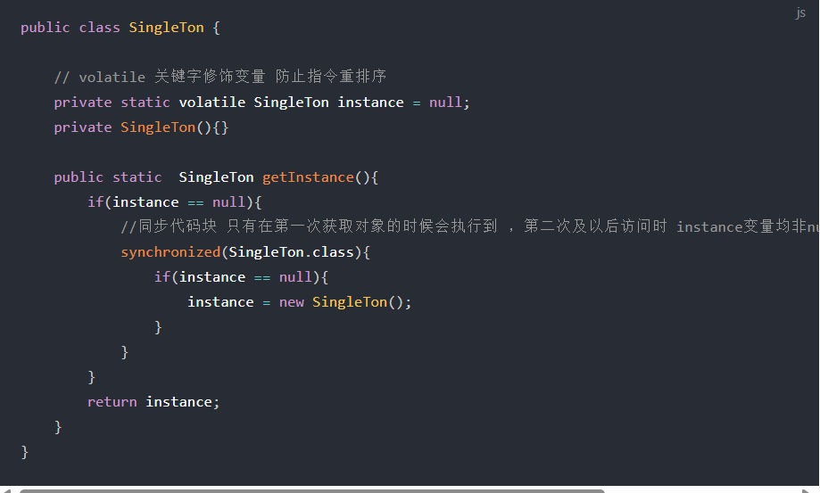 使用volatile:防止指令被重排,部分线程拿到未被初始化完全的实例