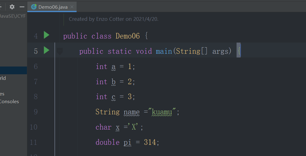 - 类成员变量:首字母小写和驼峰原则:monthSalary 除了第一个单词以外,后面的单词首字母大写 比如:lastname 这样就很怪 是lastName