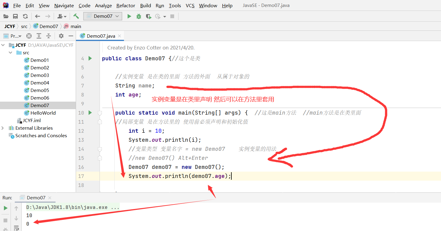 实例变量 从属于对象 所有数字类型不自行初始化 都是0 0.0 布尔值默认是false 除了基本类型其余都是mull