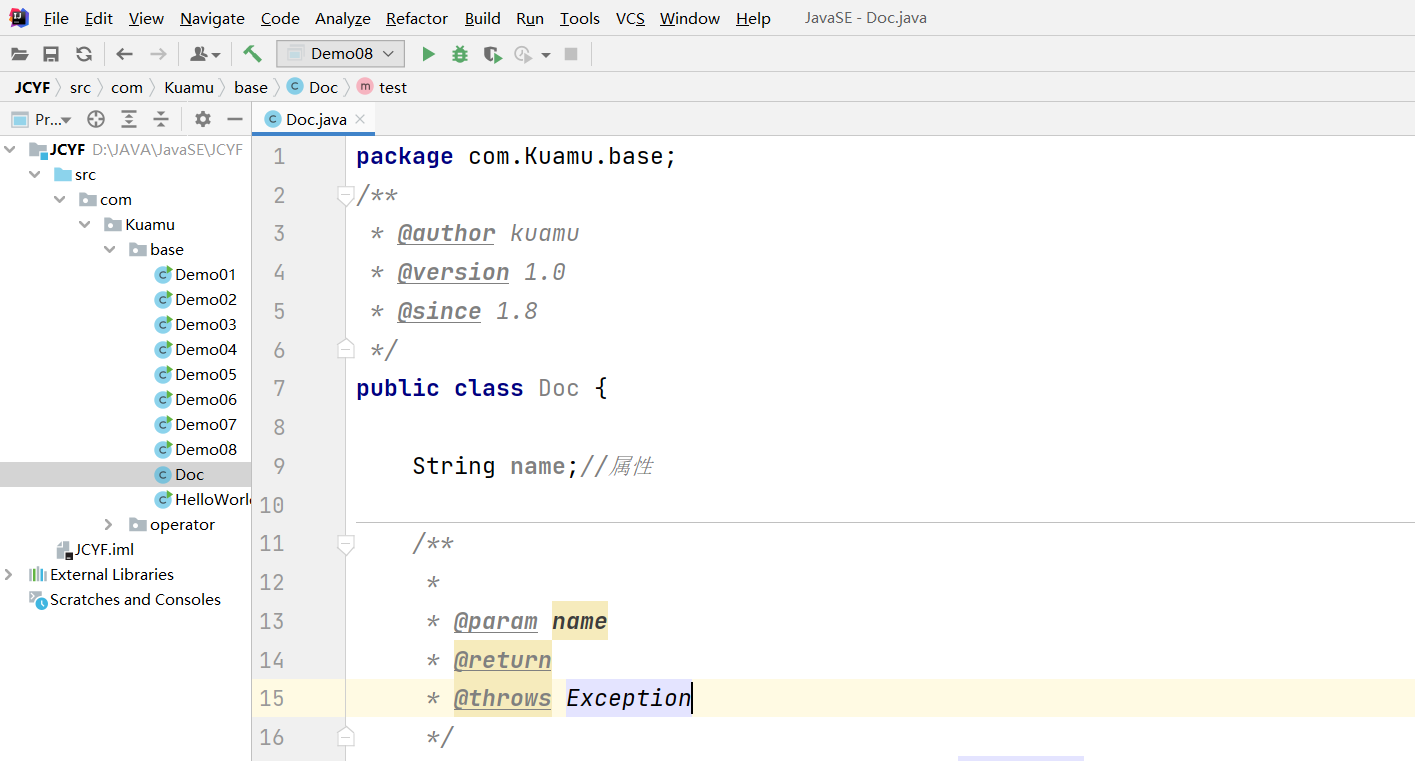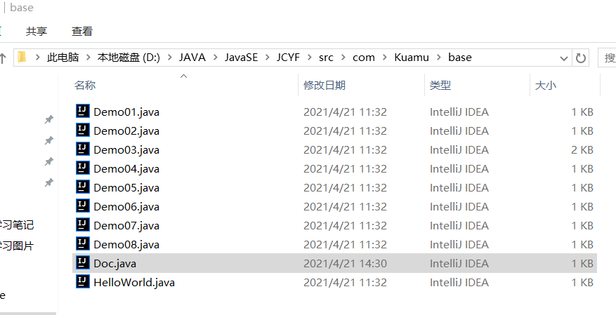 com.Kuamu.bese.Demo01 是文件名 精确到包成员