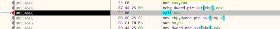然后F9再次到CALL eax的时候如果是 GetpRrocessAffinityMask 函数调用,说明反调试已经顺利通过。