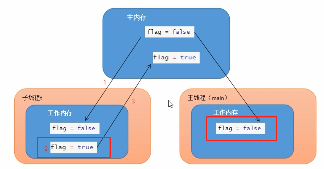 引入:多个线程访问共享变量,会出现一个线程修改变量的值后,其他的线程看不到最新值的情况;
