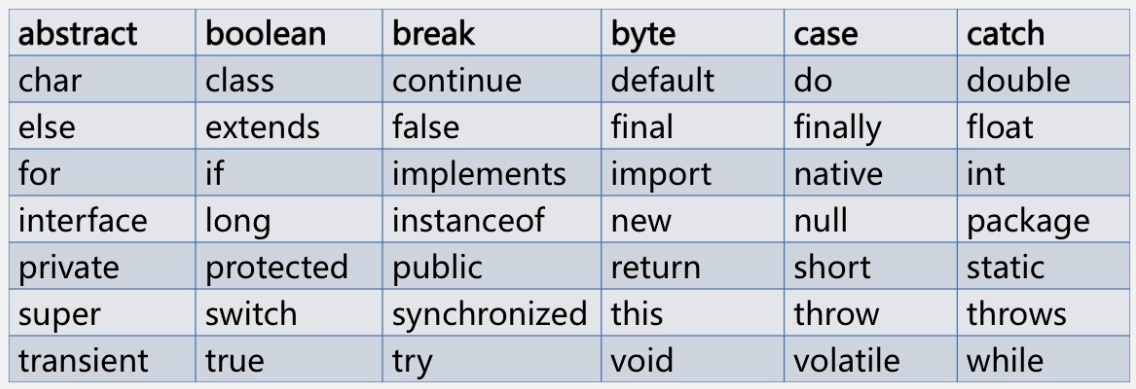 关键字用来表示特定的意义,也称为保留字,不能用于标志符。Java的关键字共有48个。