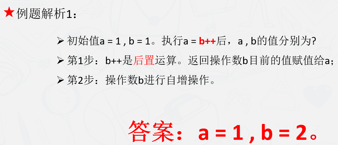 后置运算:先返回表达式(操作数目前)的值,再对操作数进行自增(减)操作;