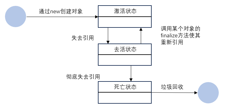 根据被引用对象所引用的状态,可以分为三种:激活状态、去活状态和死亡状态。三者的关系如图所示。