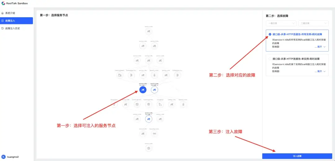我们开放了大量在实际生产中常见的故障场景,只需一键注入故障,就能在3分钟之内获得一个详尽可解释的故障根因分析结果。