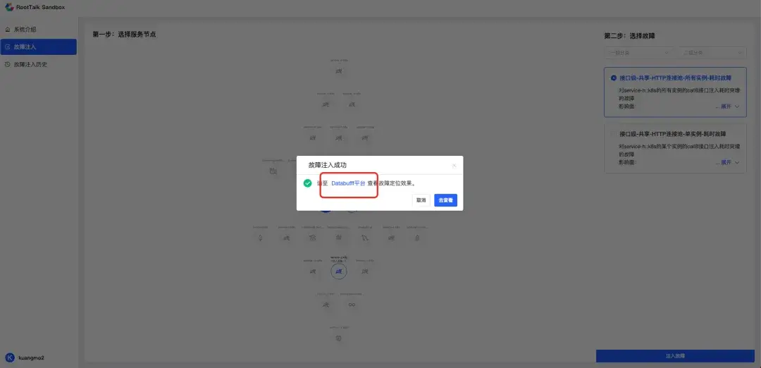 利用RootTalk SandBox 可以体验Databuff的根因收敛能力。具体操作如下。