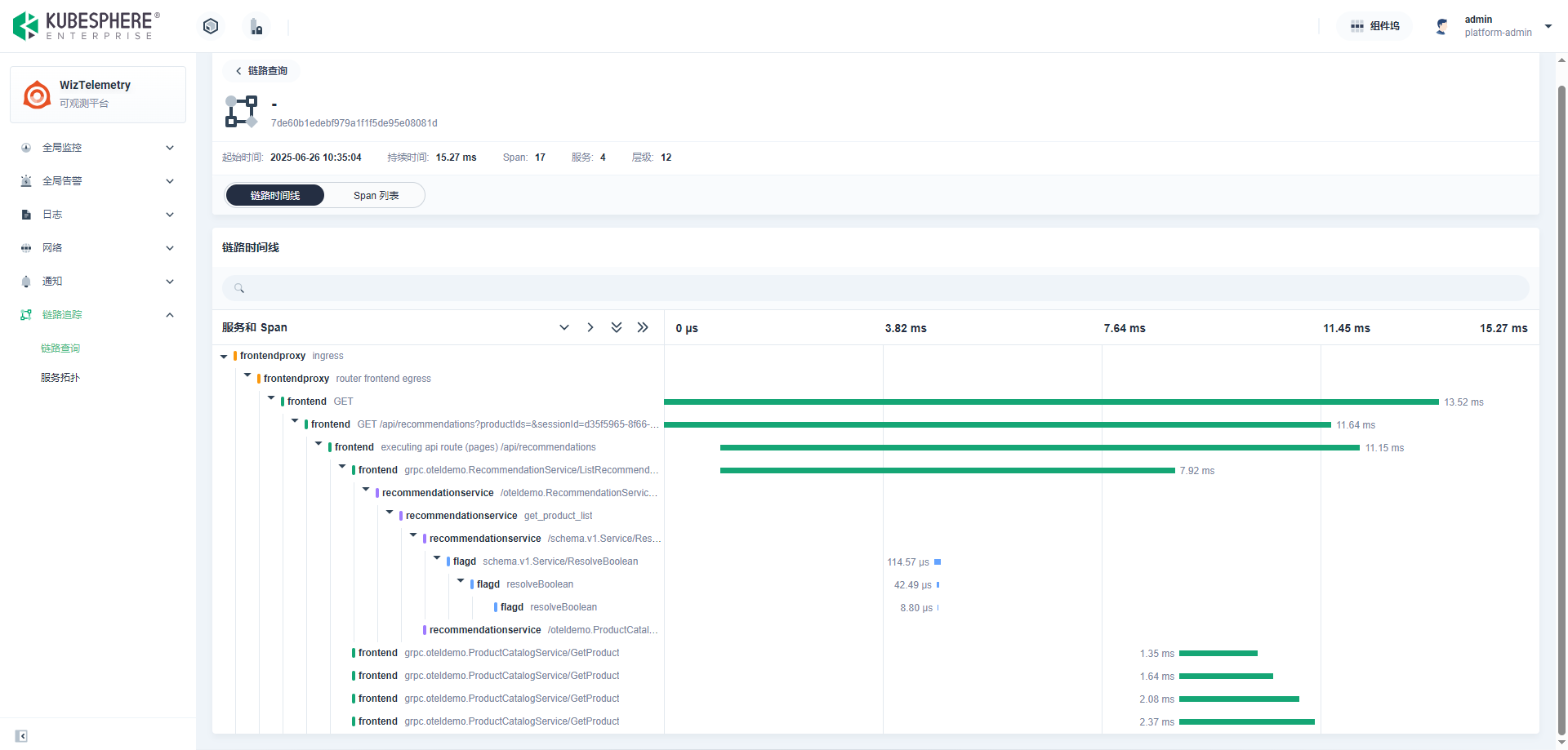 本文作为 WizTelemetry 可观测平台系列解读 的第四篇,将聚焦其核心能力之一——链路追踪,深入剖析该功能的设计理念、关键特性与典型应用场景,帮助读者全面了解其在分布式系统可观测性中的价值与实践。