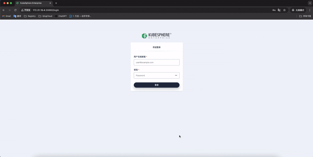 用户可通过配置使用 KubeSphere 账户登录,统一身份体系,简化管理流程。详细配置可查看 接入 KubeSphere 账户
