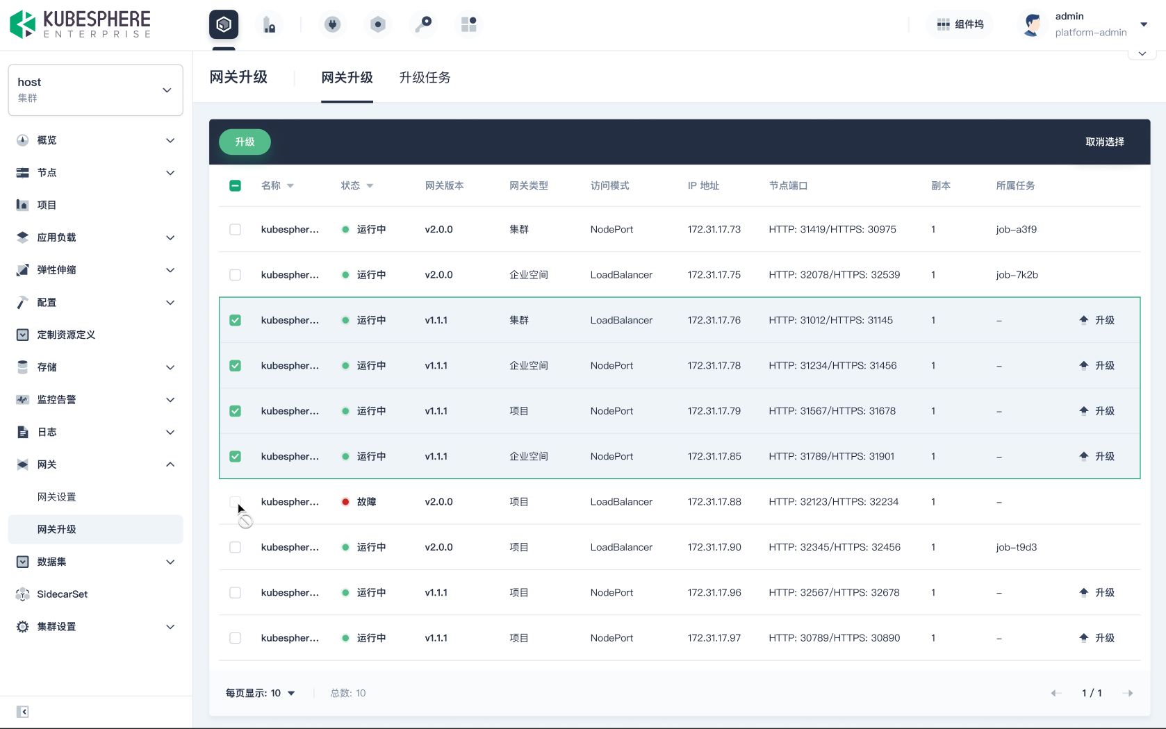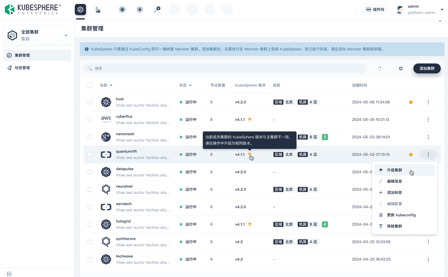 在大规模生产环境中,集群治理能力决定了平台的稳定边界与运维上限。KubeSphere v4.2.1 围绕网关平滑升级、多集群治理、节点精细化调度等方面进行针对性提升。