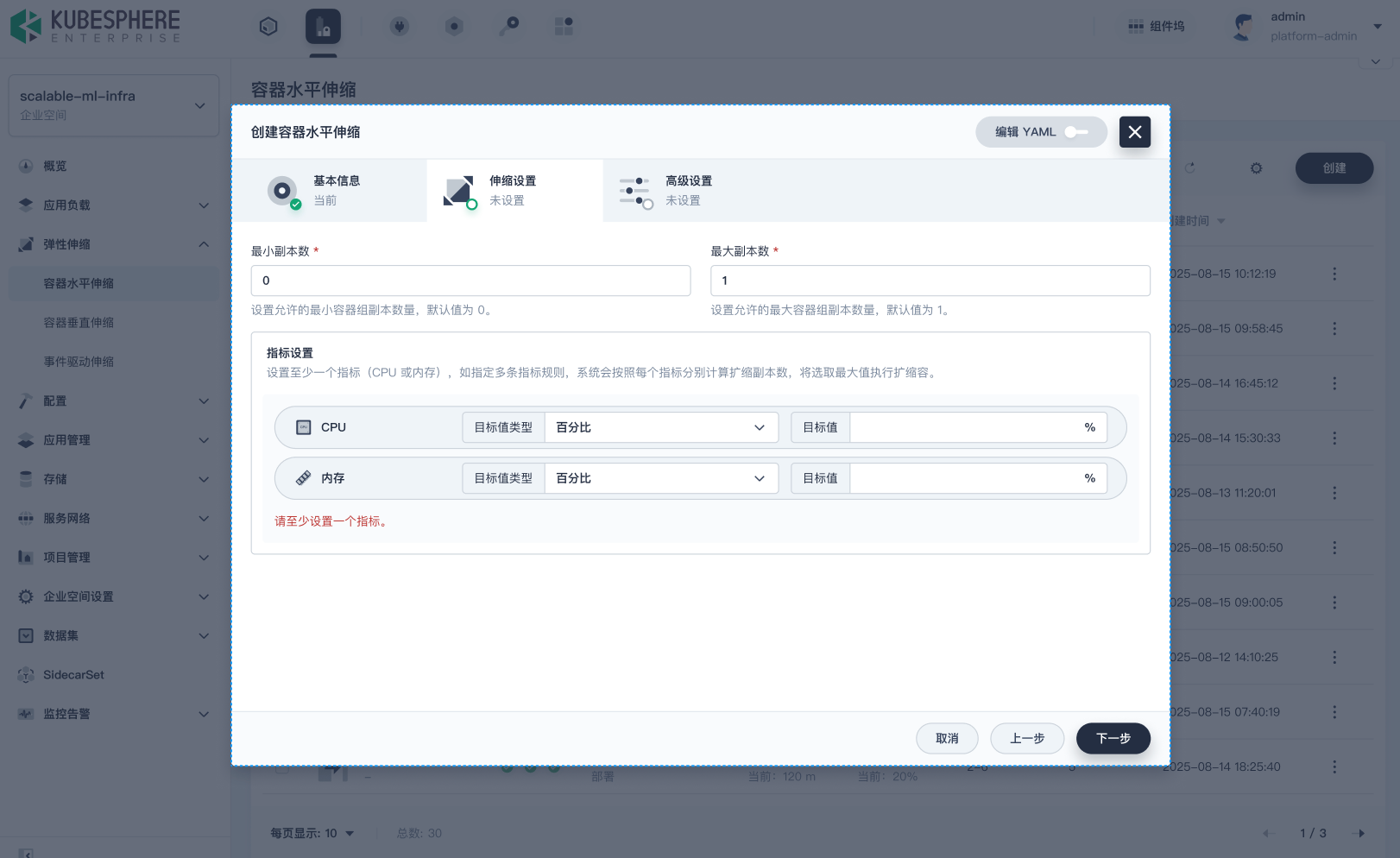 KubeSphere v4.2.1 通过集成垂直 Pod 自动扩缩(VPA)、事件驱动的弹性伸缩机制,并增强传统 HPA 策略,实现更精准、更敏捷、多维度的资源弹性调度能力。