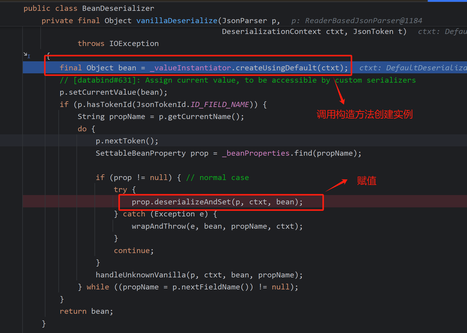 循环解析json然后反序列化处理,未知字段交给handleUnknowVanilla()处理