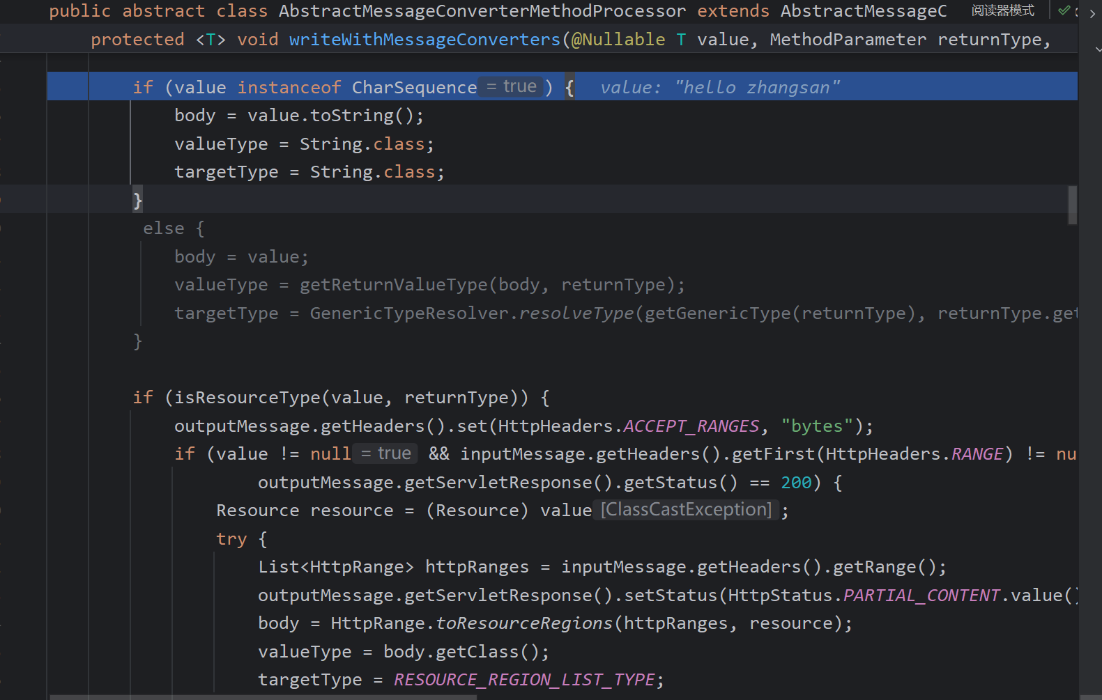 这个转换器支持返回纯文本以及任意类型,在上述的canWrite中,valueType以及这个选择的MediaType(浏览器同意返回的格式)都是支持的