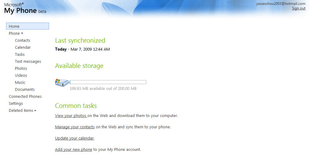 不过现在Windows Mobile的用户有福气了,微软新推出的MyPhone服务,能彻底让你远离这样的噩梦,使用MyPhone,能自动帮你同步你的联系人电话号码、短信、手机里面的相片、音乐到网上,就算你的手机不幸遗失了,联系人还在,这可方便多了。不过现在MyPhone刚开放Beta版本供用户使用,使用前需要申请排队。