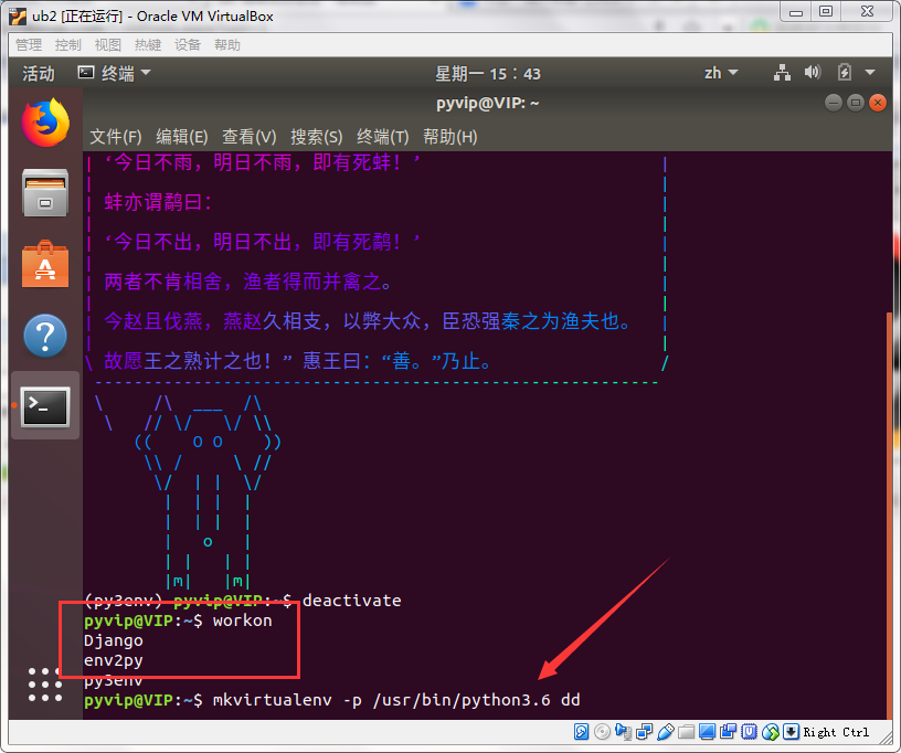 创建一个新的虚拟环境(mkvirtualenv -p /usr/bin/python3.6 xxx 根据实际情况来定),workon用于查询已有的虚拟环境