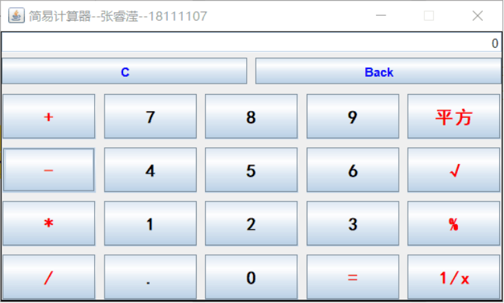 仿照Windows计算器,编写一个具有GUI的计算器,能实现加、减、乘、除四则运算,平方、开方运算,倒数、百分号运算等。历次计算过程存放在文件中,再显示回控制台便于查看计算过程。具体参考windows计算器。