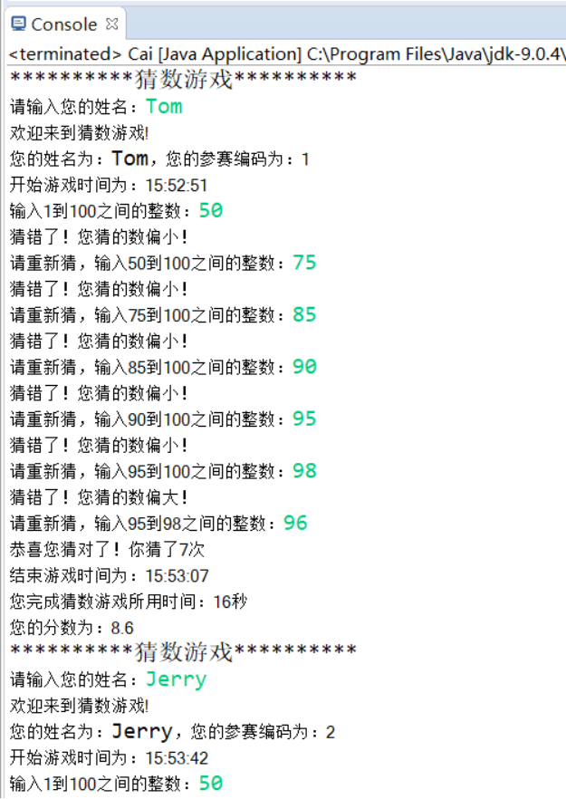 计算机产生1-100随机数,与用户输入进行对比。猜中即胜,猜不中,提示是大了还是小了,给出范围(如第一次猜,随机数60,用户所猜40,提示用户猜的值偏小,范围40-100),继续猜,直至猜到,给出所用时间和次数,计算出分数。做出成绩排行榜,给出相应将奖励,排行榜存放到文件中。