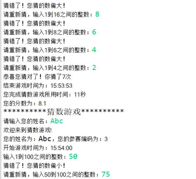 猜数游戏:计算机生成1-100随机数,与用户输入进行对比,猜中即游戏结束,猜不中则提示用户所猜大或小,给出范围(如随机数60,用户所猜40,提示用户猜的数偏小,给出下次猜数范围40-100),让用户继续猜,直到猜中为止。记录用户猜的次数和时间,统计出成绩,排列做出排行榜,将排行榜放入文件,用户可根据分数查询自己获得的奖励。