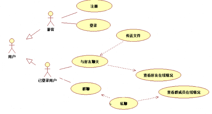 私聊:登录后,选择在线的想聊好友,双击打开私聊界面,(用JFrame构建界面,以及文本框按钮等,先创建这些变量,然后将其赋值,最后将其添加至面板)界面内可发送图片或者发送信息(先创建发送者sender和接受者getter,然后将发送的内容用insert.插入到文本框并通过Description过滤器描述文本),我方发送后,对方立即可接受。