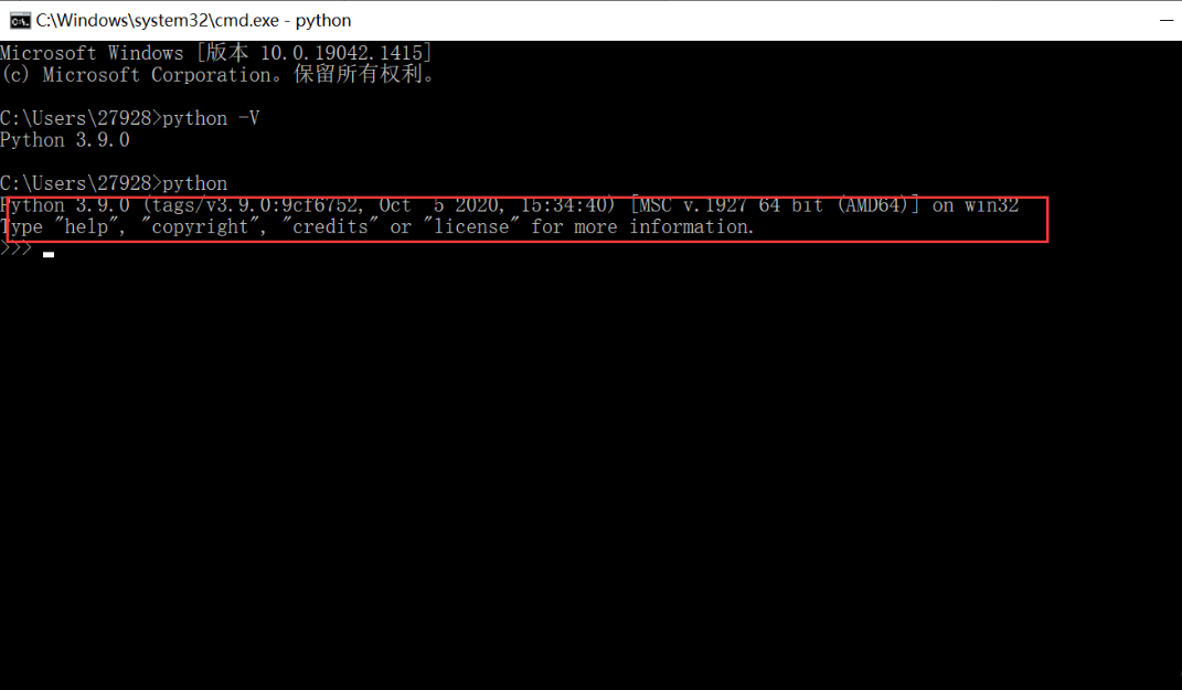 3、win+R ,运行cmd。输入Python -V将会得到对应版本。输入Python检查。