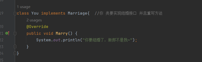 三、创建一个You类实现结婚接口,并且重写接口真的结婚方法