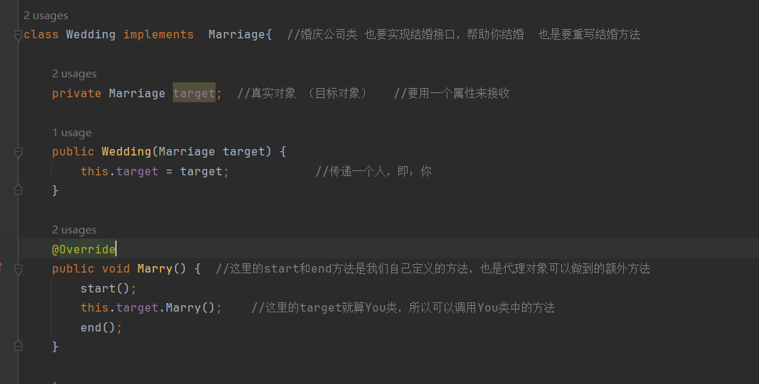 这里是实例了婚庆公司类 而不是使用You类,所以代理对象代理了真实对象。