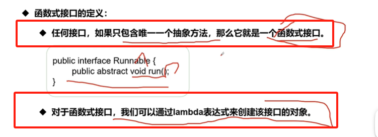 简单来说就是,一个接口只定义了一个方法,那么可以用Lambda表达式来创建接口的对象。