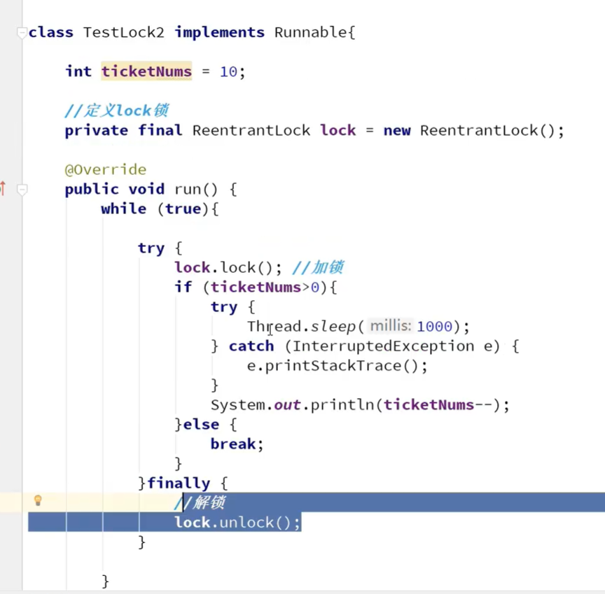 Lock锁: 和synchronized 锁是一样的,但是这个是显式的锁要用ReentrantLoc类(可重入锁)实例化 并且要定义常量和私有,这样才能更安全