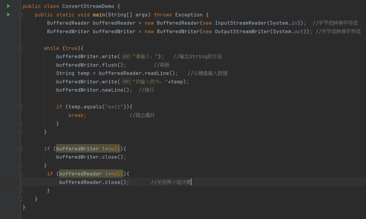 这里要注意的是,System.in 和 System.out 本来就是一个字节流 所以不需要弄到创建字节流对象