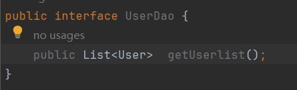 定义操作实体类的方法,JDBC用Impl来实现,这里不一样 ,这里我们先写一个查询全部用户的方法