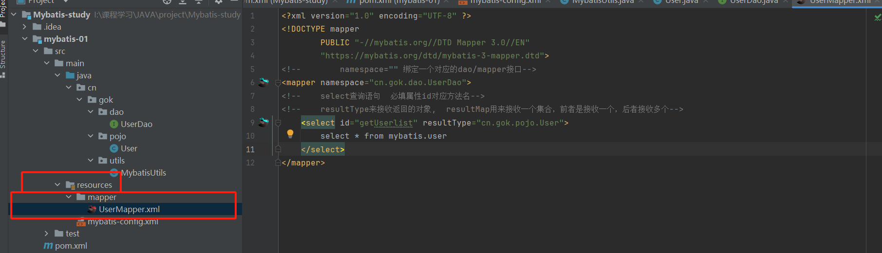 创建一个Mapper包(随便放,最好放resource里面),里面放mapper映射文件