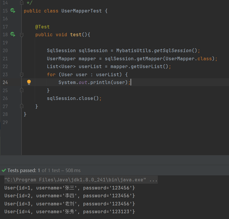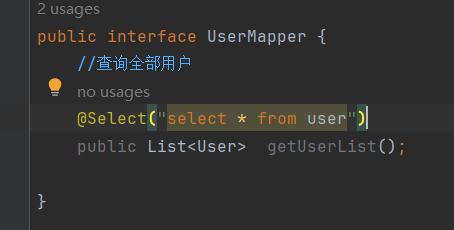 定义一个抽象方法(查询全部):并且使用了注解(增删改查同理)
