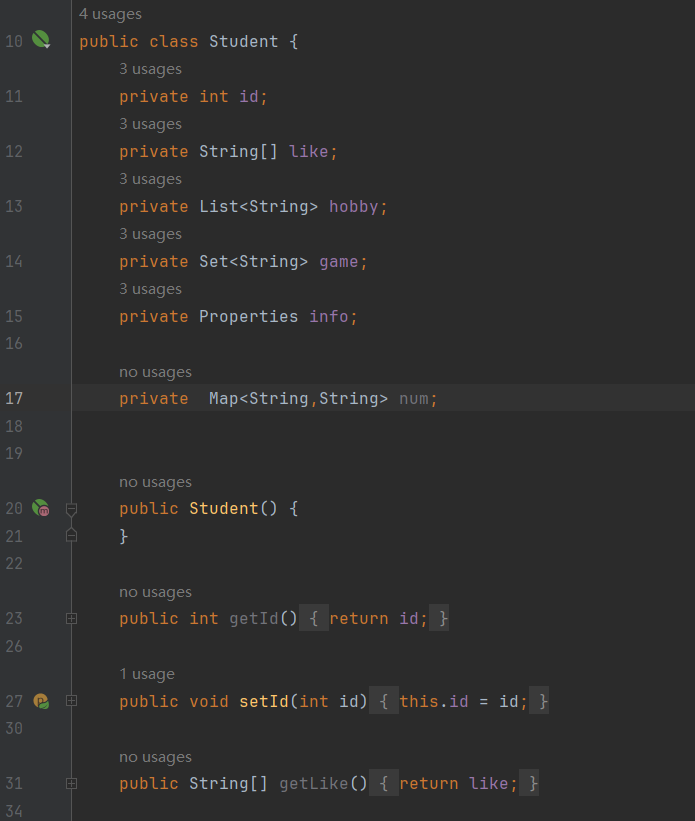 一、首先创建一个拥有各种类型的实体类,添加构造方法,get&set 还有toString方法