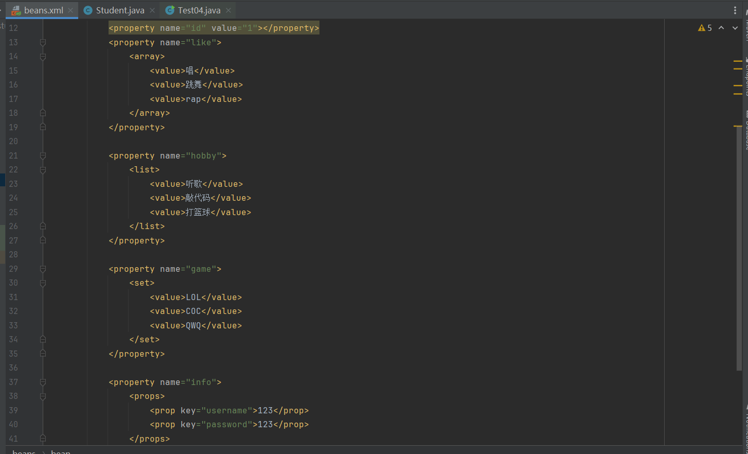 二、在配置文件中实例化对象,并且赋值 每种类型都有自己的赋值方式