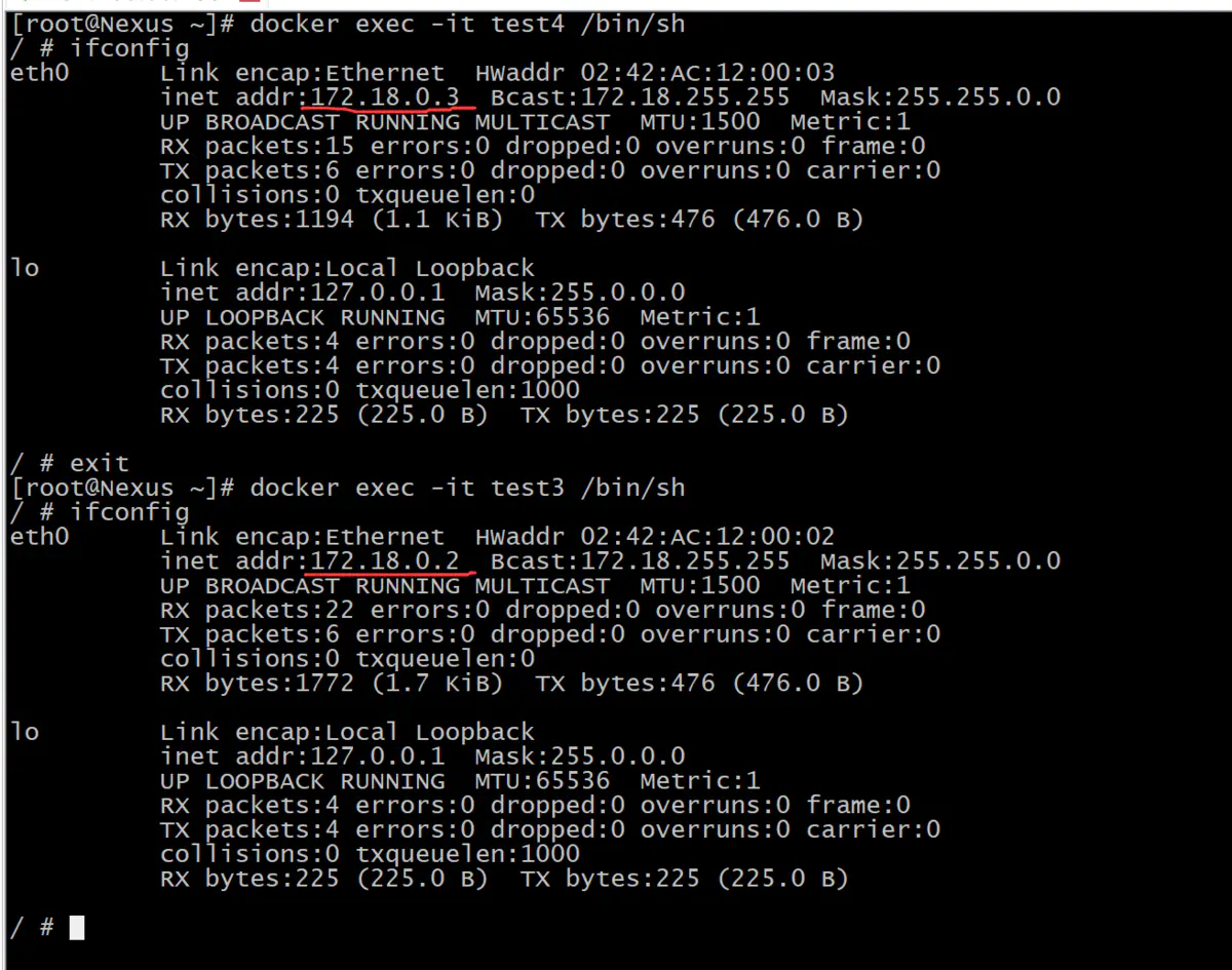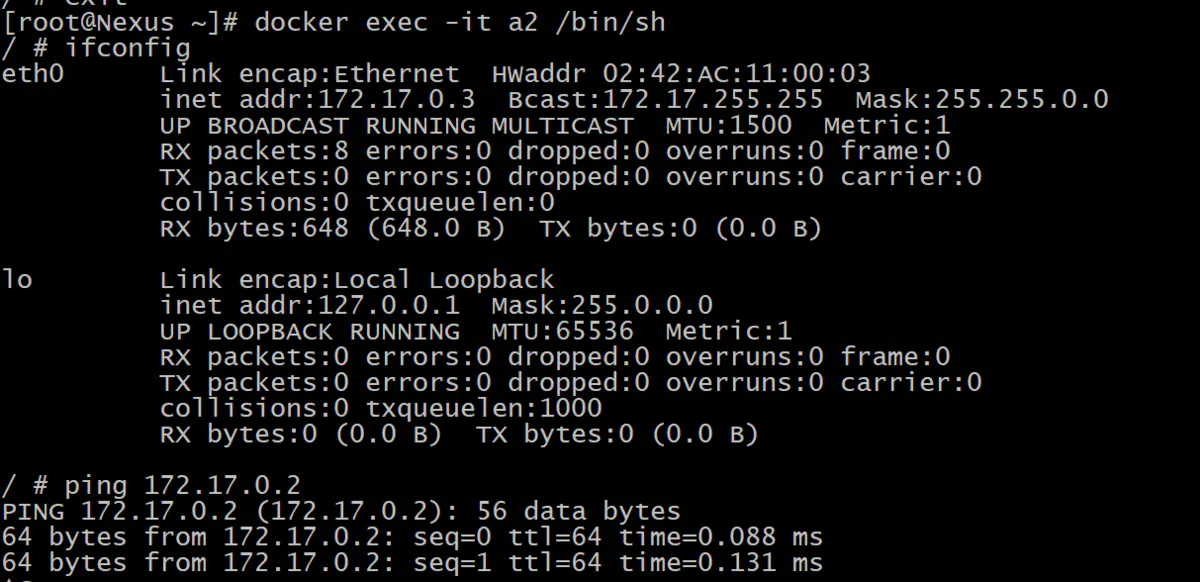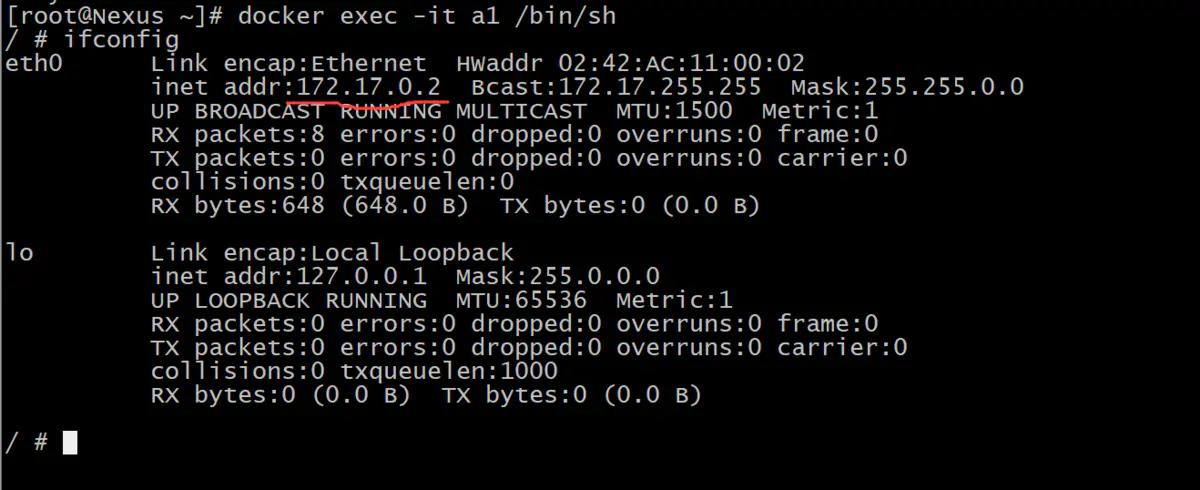 # 分别进入test7_container 和a1查看ifconfig 发现两个是一样的