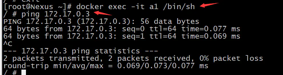 #在a1容器内尝试ping下a2的ip 172.17.0.3
